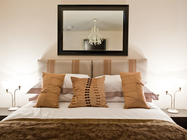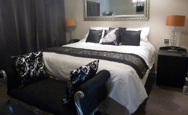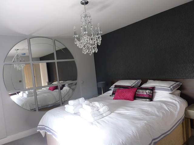 The Leckhampton Suite ( 510 sq ft) is a spacious, contemporary one bedroom apartment with a fun Africian theme, mirrored bedroom and marble wet room. Large open plan living room with fully equipped kitchen. Large flat screen TV's in both living room and bedroom creates a great place to relax and enjoy Cheltenham and surrounding Cotswolds.