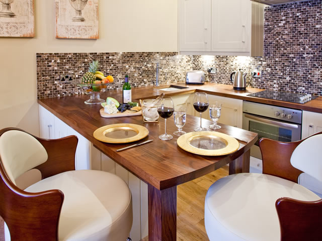 The Montpellier Suite (535 sq ft) is beautifully furnished offering a feeling of luxurious opulance. The apartment has a marble wet room, a high specification, fully equiped kitchen with solid wood work surfaces and tumbled marble tiling. The perfect apartment for that romantic break. An extra fold up bed can be added if required, please request on booking. Located on the ground floor.